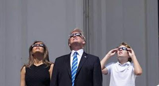 oleh kamera seseorang dimana Donal trump sedang mencoba melihat gerhana dengan
